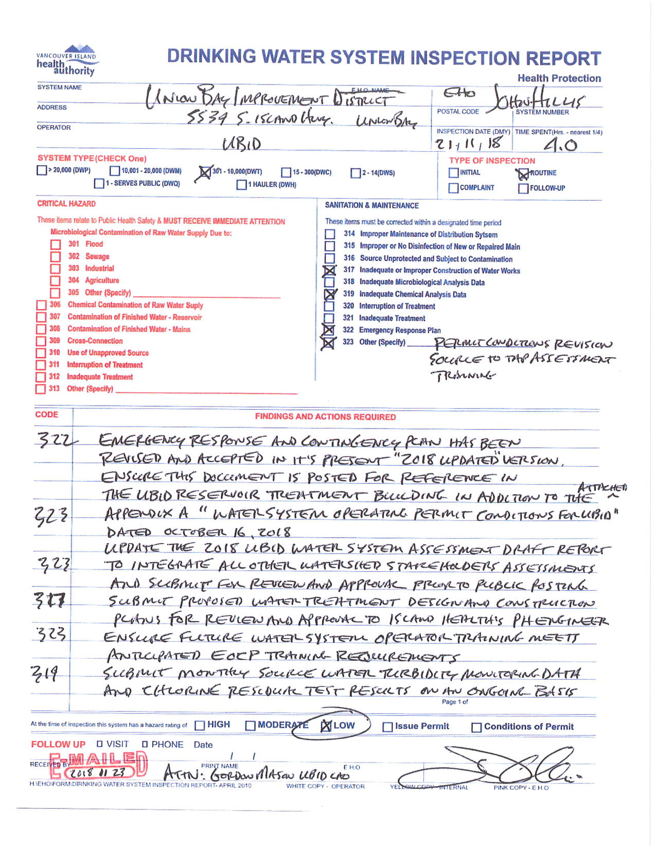 The UBID Board’s recent January 2019 decision to close all public board meetings to the public is contrary to our own meeting bylaws and the Local Government Act. The decision to remove the date of the UBID election day of April 13, 2019 from Union Bay’s website is highly questionable and suspicious. All information regarding our water and financial costs of borrowing for the water treatment plant has beenremoved from UBID’s website. I believe this is a glaring example of a systemic lack of transparency and accountability.